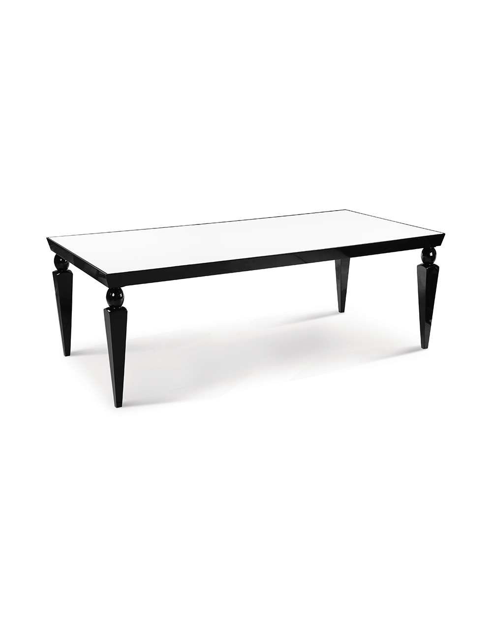 | DEC.0972.14 | L 220 x P 110 x A 76cm – mesa em jequitibá com tampo de vidro preto/branco. |